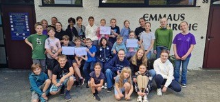 im Wege der zweiwöchigen Sommerferienspiele in der Emmaus-Kirche sind Kinder aus dem Quartier, im Alter zwischen